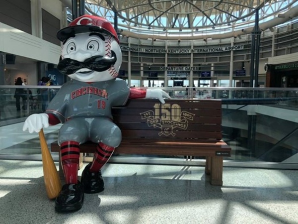 - Cincinnati Reds 150th Anniversary Commemorative BenchArtist: The Cincinnati Reds, LLC / Location: Main Terminal, Baggage Claim LevelLearn More